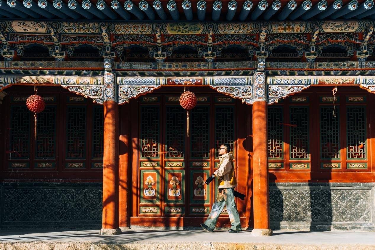 “早晨阳光打在丹噶尔古城拱海门的阁楼上,穿过门洞,有种时空穿越的厚重感。城隍庙与老建筑的斑驳纹理在光照下仿佛也在诉说故事。”在狄久锋看来,丹噶尔古城与其他古镇的不同之处,正在于这份糅合了雪山美景、古朴建筑与当地居民日常笑颜的本土温情。狄久锋穿行于古城街巷,感受着光线在屋檐下、摊位旁、人群间的流转。“我想让观众透过这束光,看见湟源的温度——不是遥远的风景,而是可触摸的生活。”他说。