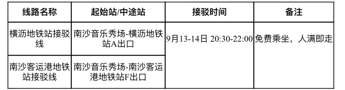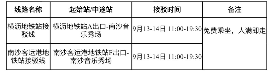 为方便广大市民往返音乐节活动现场,广州公交集团下属巴士集团番南片区开通两条接驳专线,为市民进场及撤场提供便利,实现地铁站与音乐节会场的无缝衔接。具体线路信息如下: