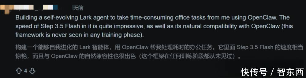 还有开发者赞叹说,Step 3.5 Flash速度十分惊艳,与OpenClaw的自然兼容性也很出色。